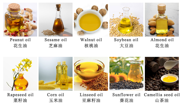 This machine can cold or hot press various of oil seeds, includes sesame, peanut, castor, walnut, camellia, olive, palm, avocado, sunflower, rapeseed, ect.